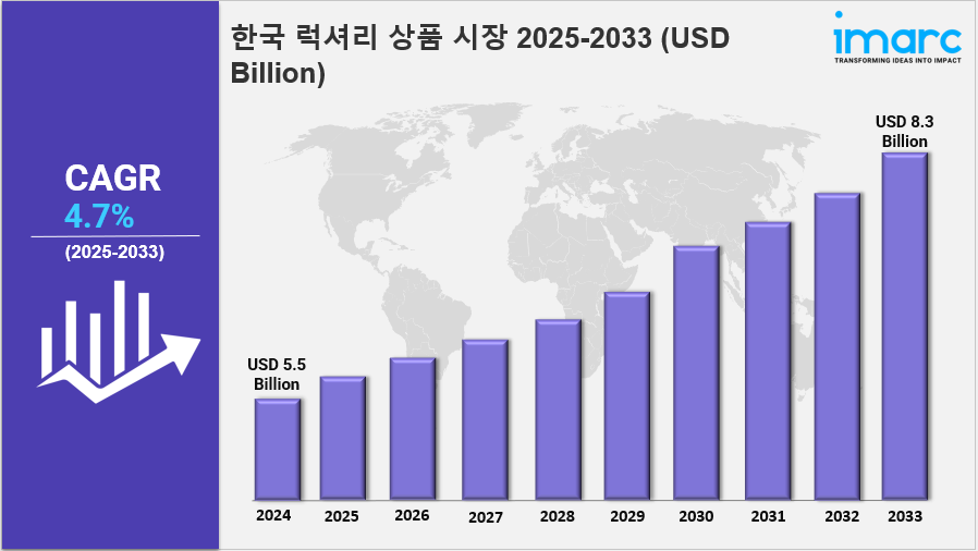 IMARC 그룹은 최근 "한국 명품 시장 규모, 점유율, 동향 및 유형, 유통 채널, 지역별 전망, 2025-2033"이라는 새로운 연구 보고서를 발표했으며, 시장 동인, 세분화, 성장 기회, 동향 및 경쟁 환경을 상세히 분석하여 현재와 미래의 시장 시나리오를 이해하고 있습니다.