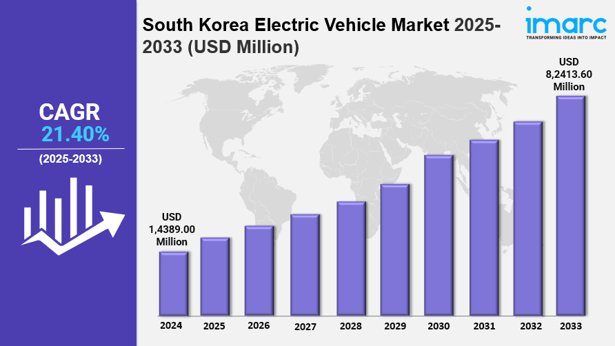IMARC Group has recently released a new research study titled “South Korea Electric Vehicle Market Size, Share, Trends and Forecast by Component, Charging Type, Propulsion Type, Vehicle Type, and Region, 2025-2033”, offers a detailed analysis of the market drivers, segmentation, growth opportunities, trends and competitive landscape to understand the current and future market scenarios.