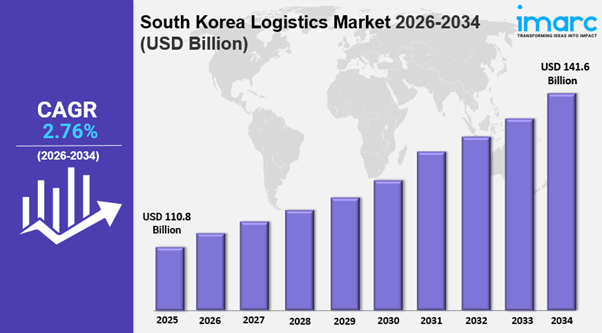 IMARC Group has recently released a new research study titled “South Korea Logistics Market Report by Model Type (2 PL, 3 PL, 4 PL), Transportation Mode (Roadways, Seaways, Railways, Airways), End Use (Manufacturing, Consumer Goods, Retail, Food and Beverages, IT Hardware, Healthcare, Chemicals, Construction, Automotive, Telecom, Oil and Gas, and Others), and Region 2026-2034”, offers a detailed analysis of the market drivers, segmentation, growth opportunities, trends and competitive landscape to understand the current and future market scenarios.