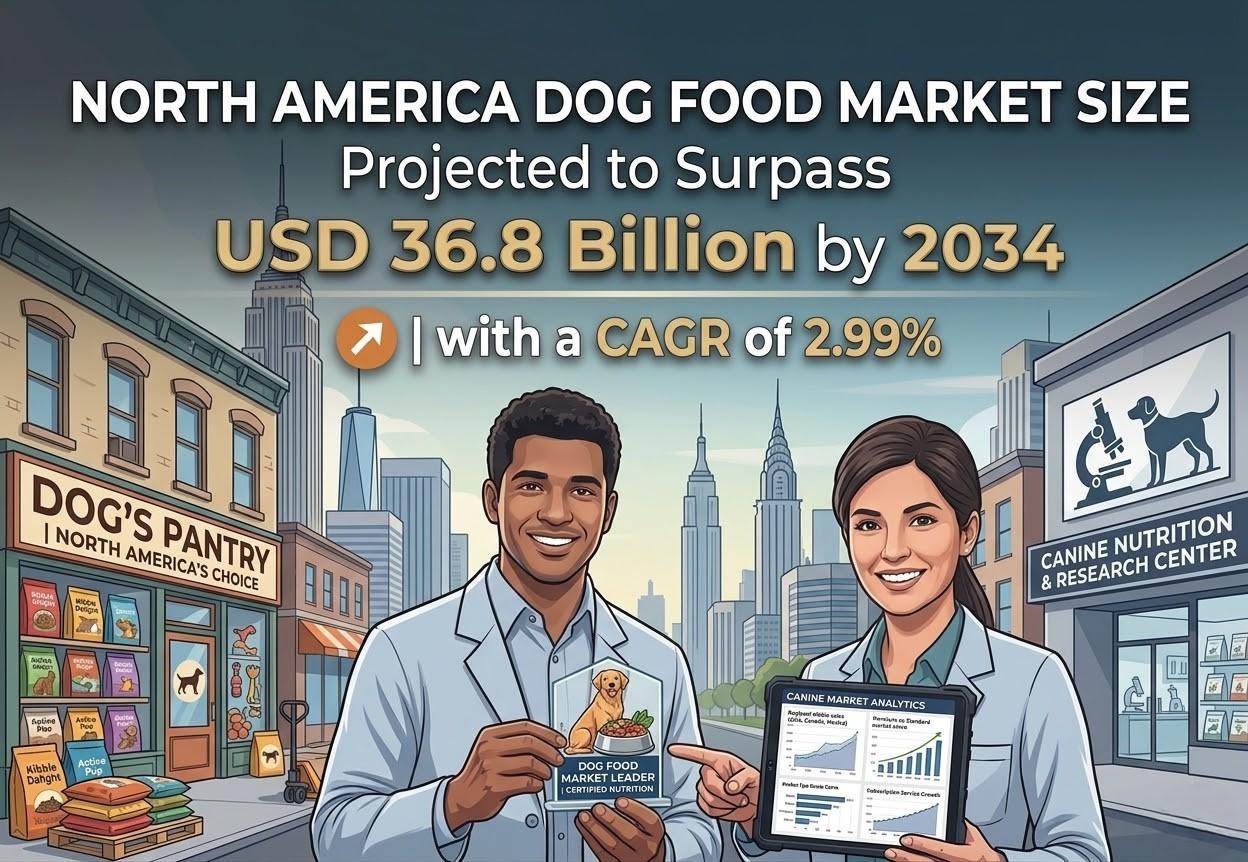 IMARC Group has recently released a new research study titled “North America Dog Food Market Size, Share, Trends and Forecast by Product Type, Pricing Type, Ingredient Type, Distribution Channel, and Country, 2026-2034”, offers a detailed analysis of the market drivers, segmentation, growth opportunities, trends and competitive landscape to understand the current and future market scenarios.