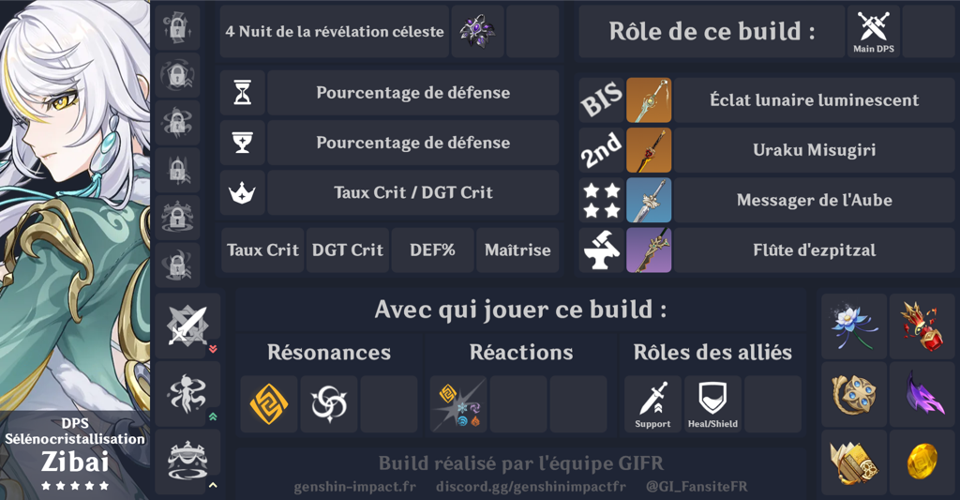 Pour optimiser Zibai, le set « Nuit de la Révélation Céleste » est sans conteste le plus avantageux.